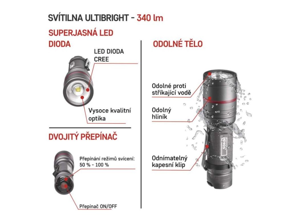 Kompaktní, odolná a vysoce výkonná – právě taková je LED svítilna EMOS Ultibright 70, která vám poskytne potřebné světlo tam, kde ho nejvíce potřebujete. Své místo najde v domácnosti, při outdoorových aktivitách nebo na cestách. Díky CREE LED chipu dosahuje světelného toku až 340 lm, což znamená silný dosvit až 200 metrů.