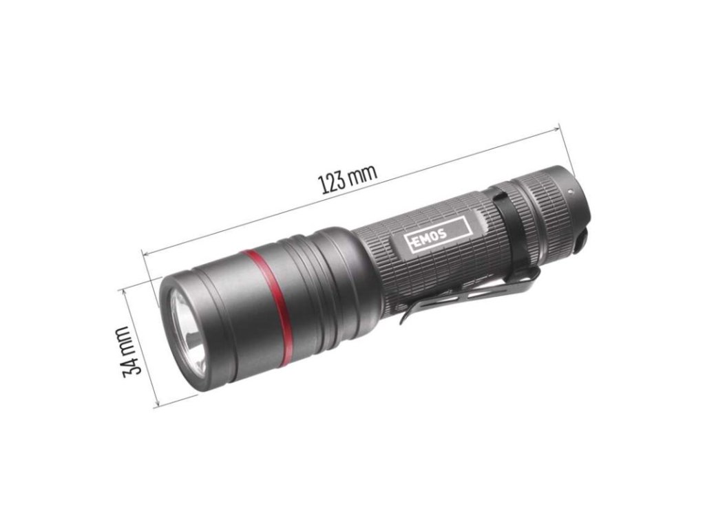 Díky kompaktním rozměrům (124 × 34 mm) a nízké hmotnosti 112 g se LED svítilna pohodlně vejde do tašky nebo batohu. Navíc je vybavena odnímatelným klipem pro snadné uchycení na opasek nebo batoh a poutkem pro lepší manipulaci.