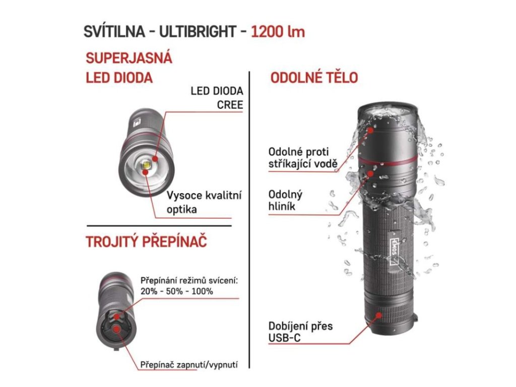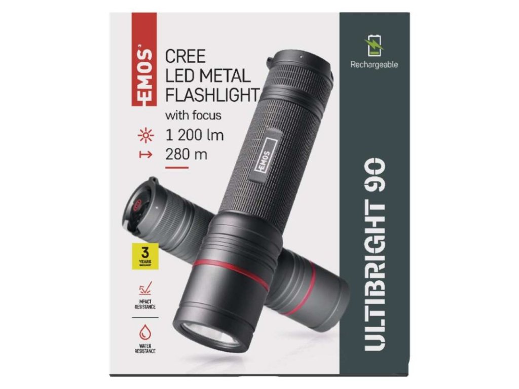 Kovová LED baterka EMOS Ultibright 90 – Profesionální svítilna pro každou situaci