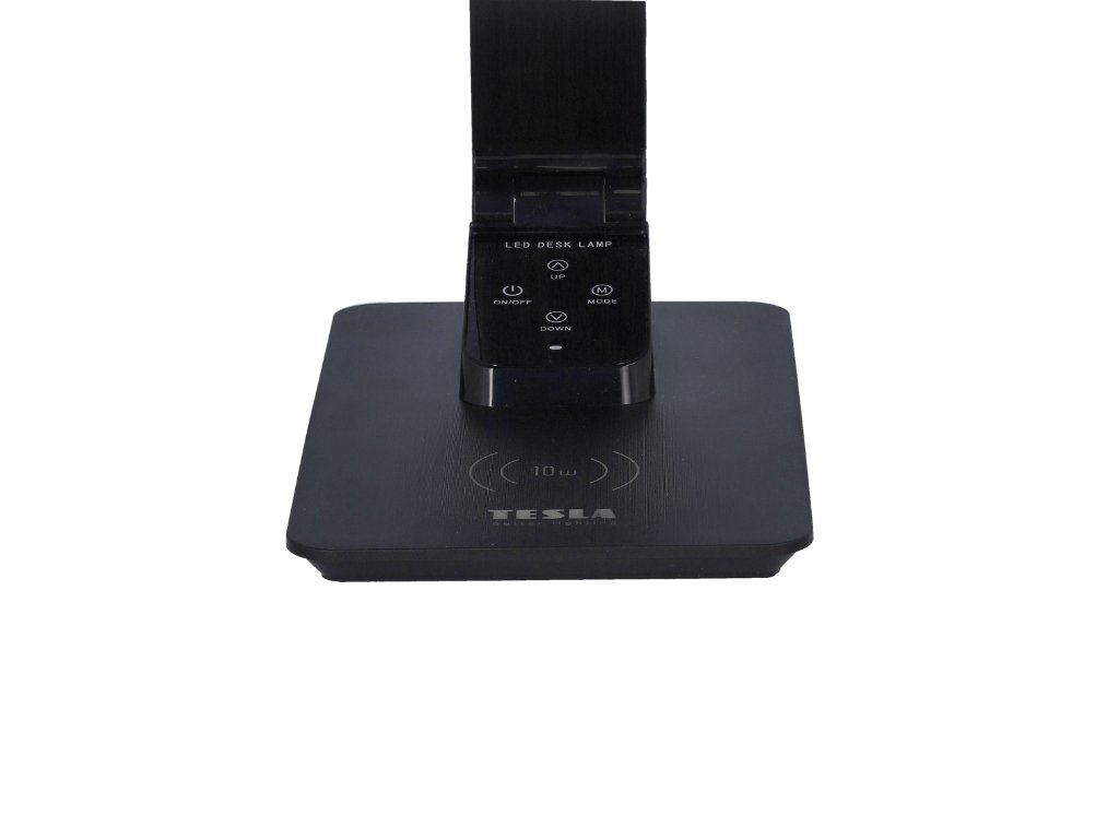 Stolní lampa LED Tesla s bezdrátovým nabíjením telefonu a USB portem. Nastavitelná barevná teplota a regulace jasu.