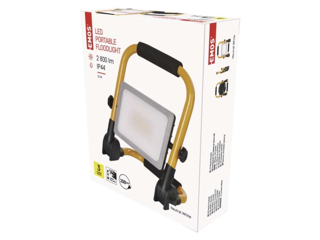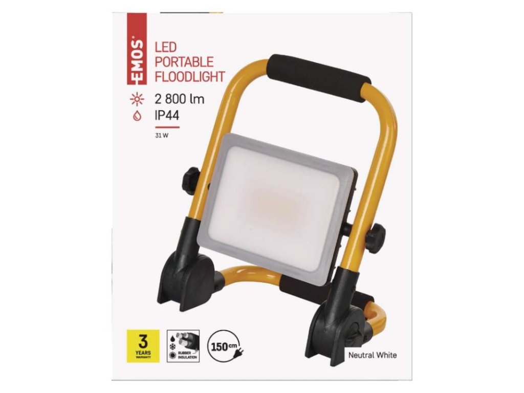 Praktické madlo, skládací stojan a 1,5 m gumový kabel usnadňují manipulaci a umožňují nasměrovat světlo tam, kde je potřeba. Vhodný jako LED reflektor na stavbu, do dílny, garáže nebo autoservisu.
