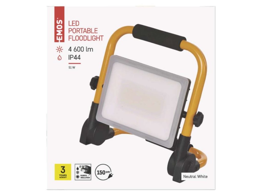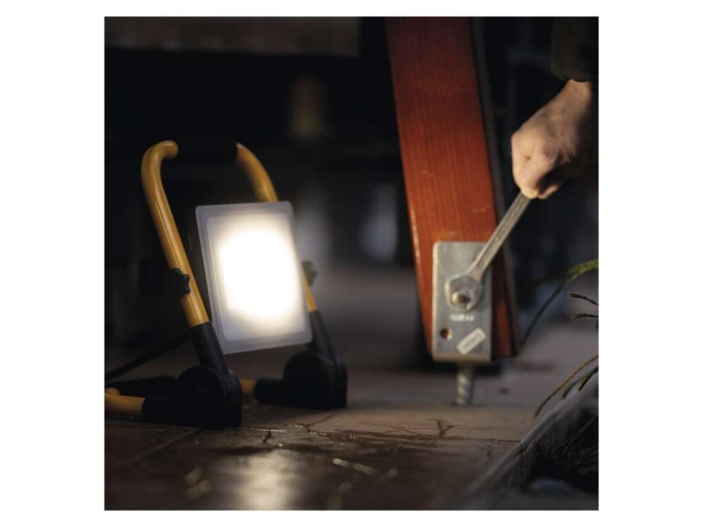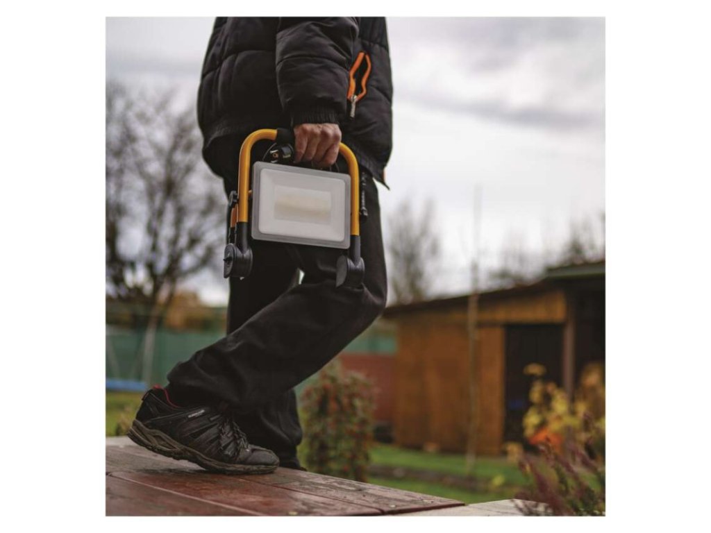 Je vybaven praktickým madlem, skládacím stojanem a 1,5 m gumovým kabelem, takže jej snadno přenesete a nasměrujete přesně tam, kde je potřeba. Hodí se jako LED reflektor na stavbu, do dílny, garáže i autoservisu, ale také pro využití u rodinných domů.