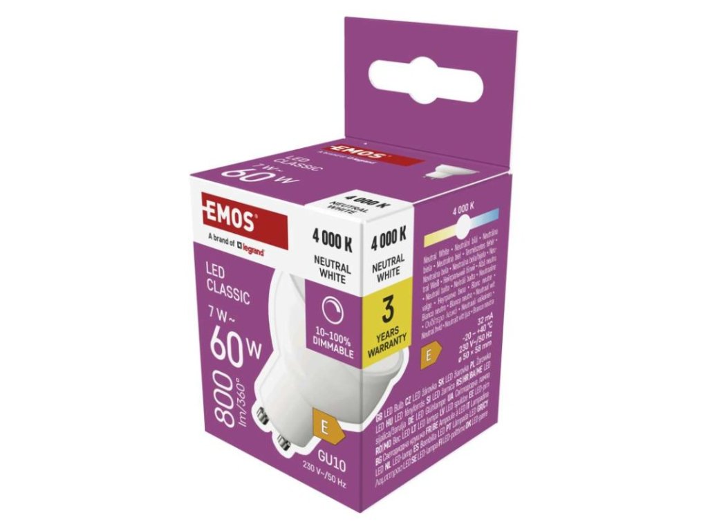 LED žárovka Classic MR16 / GU10 / 7 W (60 W) / 800 lm / neutrální bílá / stmívatelná