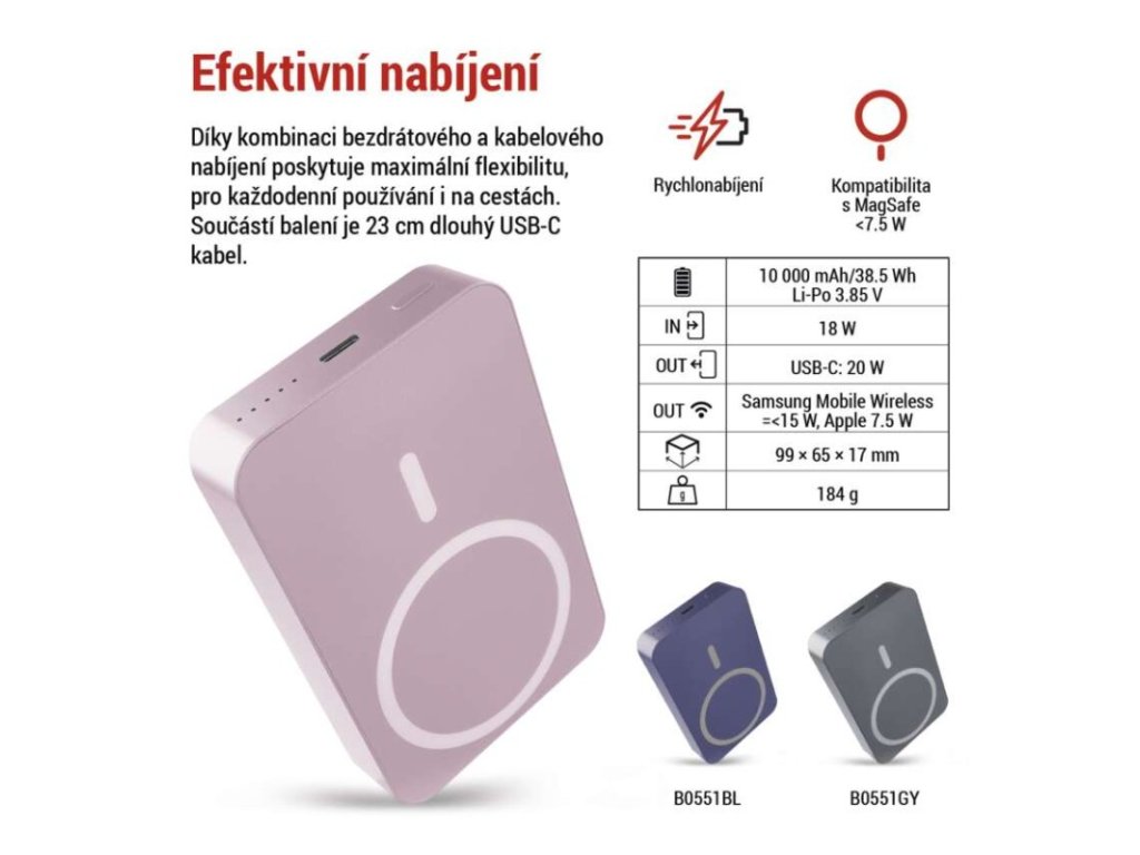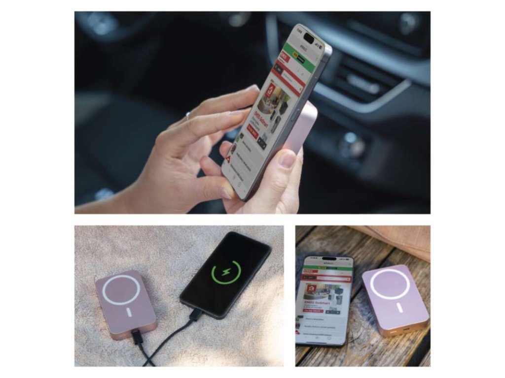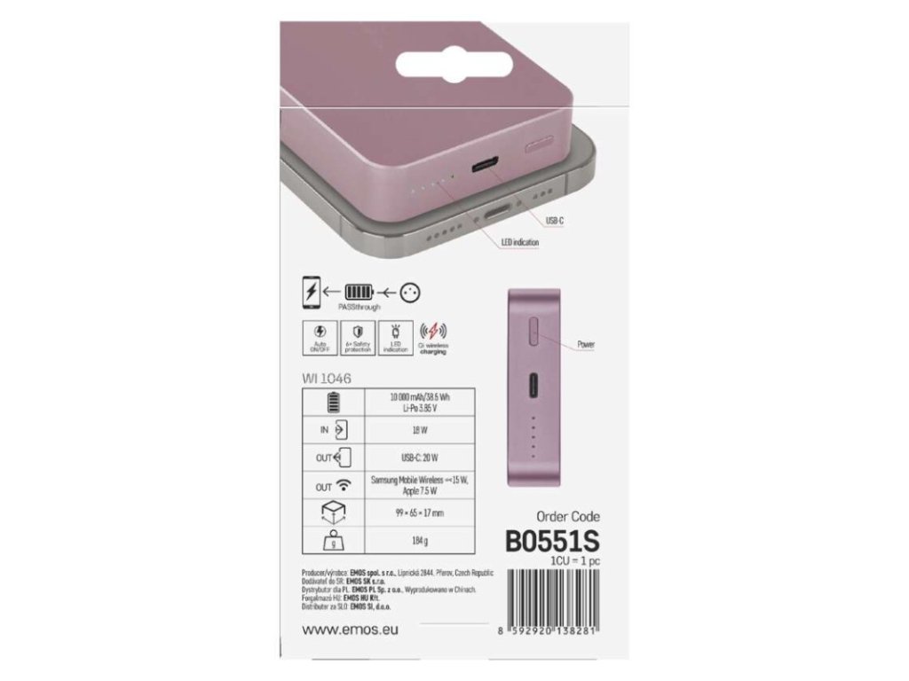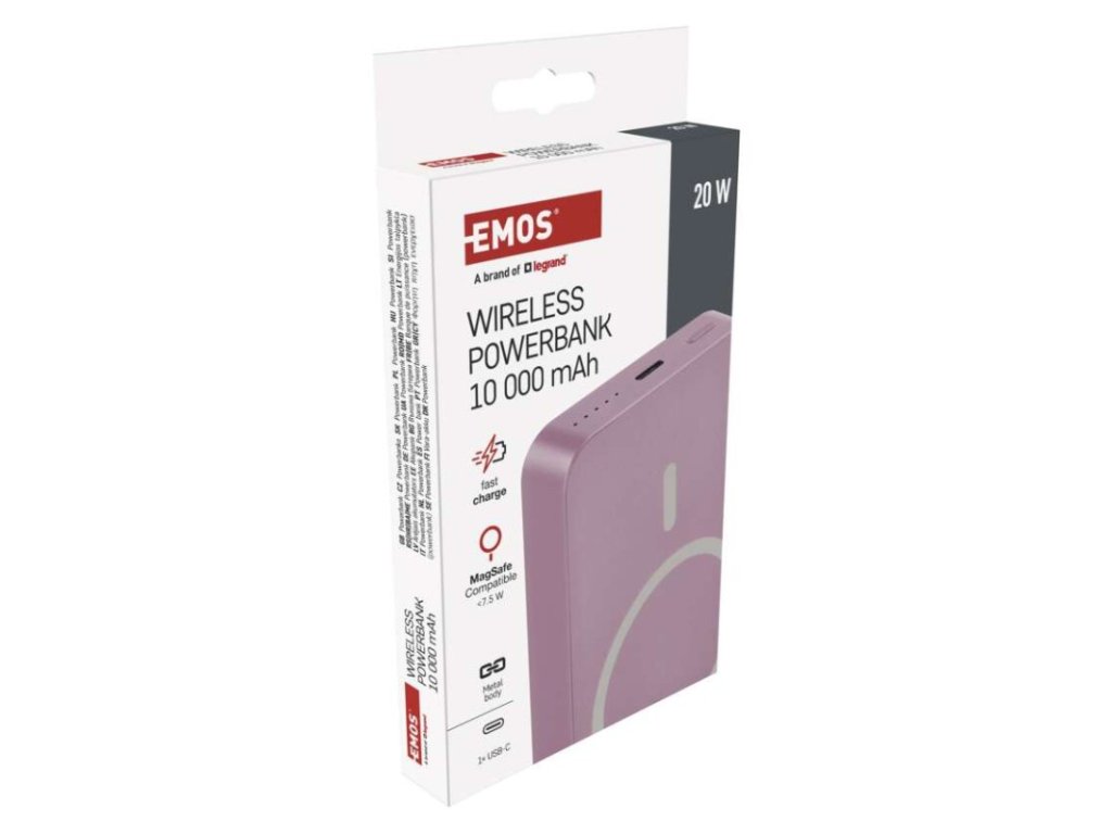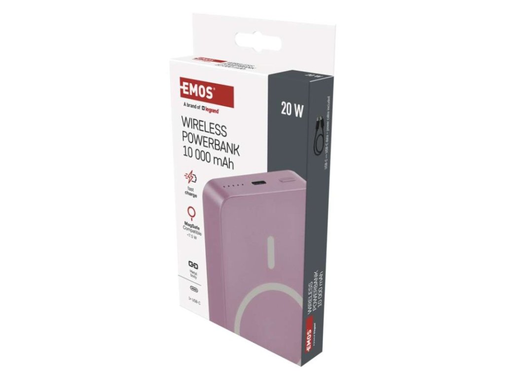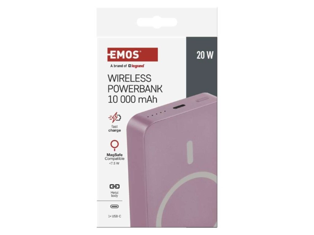 Powerbanka EMOS WI 1046, 10 000 mAh, 20 W+Wireless, lososová