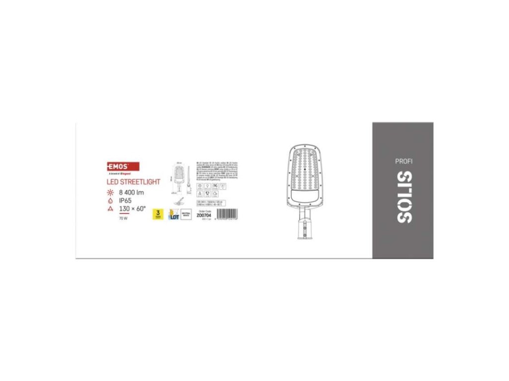 Řada SOLIS představuje moderní a energeticky úsporné lampy veřejného osvětlení, které jsou ideální pro venkovní prostory, jako jsou parky, parkoviště, komunikace či průmyslové areály. Toto veřejné osvětlení s příkonem 70 W nabízí vysoký světelný tok 8 400 lm a skvělou světelnou účinnost 120 lm/W, což zajišťuje silné a rovnoměrné osvětlení s nízkými provozními náklady.