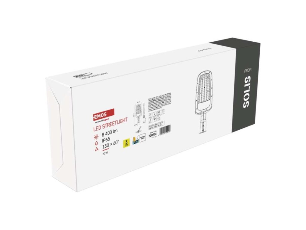 Výkonné LED veřejné osvětlení SOLIS s příkonem 70 W a světelným tokem 8 400 lm. Spolehlivé lampy veřejného osvětlení za nízkou cenu pro profesionální použití.