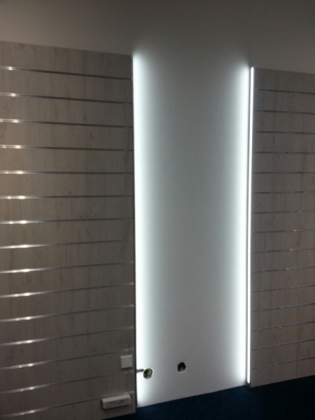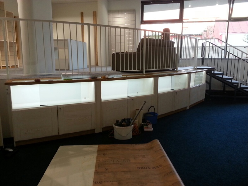 Realizace LED osvětlení prodejny. LED svítidla Tesla pro nasvícení výstavních prostorů, LED pásky pro nasvícení reklam a zrcadel a závěsná svítidla do výloh. Realizováno září/říjen 2015.
