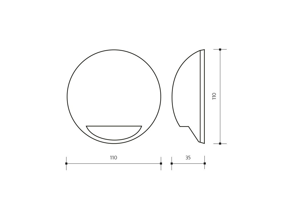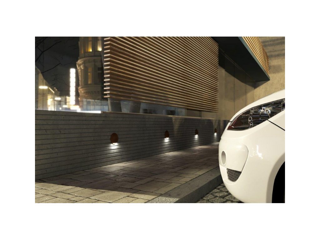 Venkovní světlo na fasádu LED přisazené, kruhového tvaru sloužící především k dobré orientaci okolo budov, na chodbách a schodištích. Použít jej lze v exteriérech i interiérech. Od svítidel s obdobným způsobem použití jej odlišuje jeho líbivý minimalistický design. Výhodou je přisazená montáž bez nutnosti sekání montážních otvorů - svítidlo i tak vypadá jako vestavné.