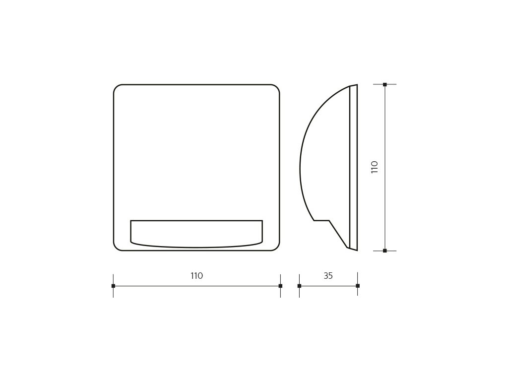 Venkovní světlo na fasádu LED přisazené, hranetého tvaru sloužící především k dobré orientaci okolo budov, na chodbách a schodištích. Použít jej lze v exteriérech i interiérech. Od svítidel s obdobným způsobem použití jej odlišuje jeho líbivý minimalistický design. Výhodou je přisazená montáž bez nutnosti sekání montážních otvorů - svítidlo i tak vypadá jako vestavné.