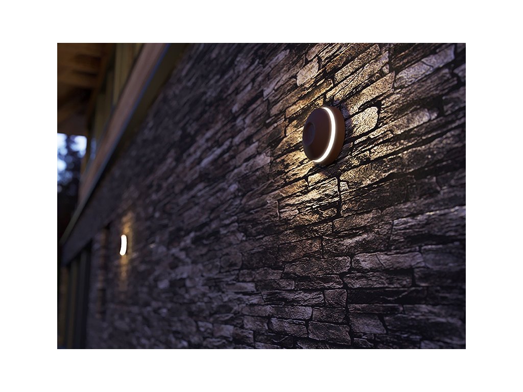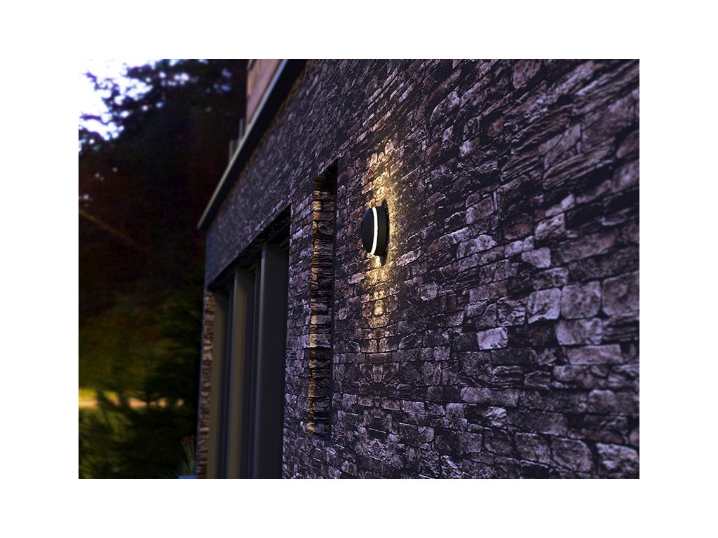 Venkovní světlo na fasádu LED nástěnné s kruhovým designem, které svými paprsky vytváří příjemnou světelnou mlhu ve tvaru kruhu v jeho okolí. Nasvítit se dají nejen venkovní fasády, ale i vnitřní chodby, schodiště, nebo wellness centra pro jeho vysokou odolnost proti vodě. Svítidlo lze také vyklopit nahoru k nasvícení prostoru pod svítidlem nebo jej otočit a použít tak k nasvícení fasád směrem vzhůru nebo k nepřímému osvětlení. Vyráběno z hliníku s plastovými kryty. Použít jej můžete v exteriérech i v interiérech budov.