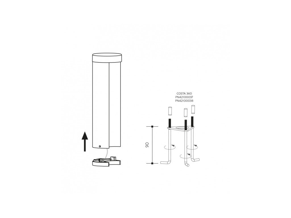Zahradní LED sloupek / svítidlo COSTA 360, rez