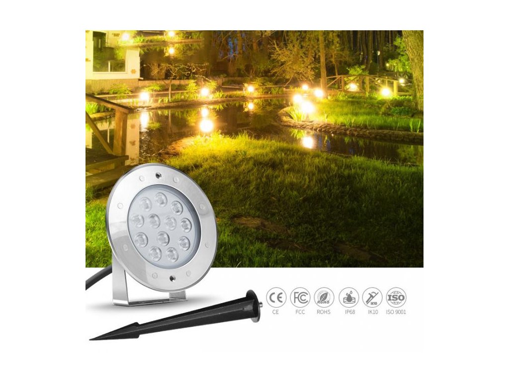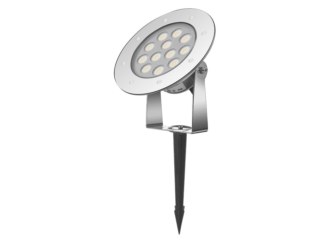 Zahradní světlo LED s trnem do země. Elegantní design a vysoce funkční provedení. Příkon 9W, vstupní napětí 24V DC, barva vyzařovaného světla bílá, modrá, červená nebo zelená. Světlo je vyrobeno z nerezové oceli 316LL, osazeno LED čipy CREE, které jsou kryty transparentním, temperovaným sklem s propustností světla 90 % zachovávajícím maximální věrnost vyzařovaných barev. Dále je světlo osazeno voděodolným VDE kabelem s gumovým pouzdrem, teplotní odolnost -40 °C až 90 °C.